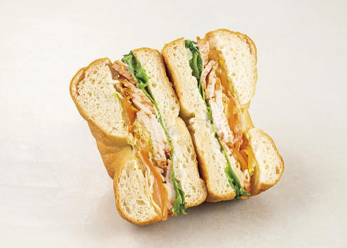 ピリッとしたタンドリーチキンと野菜マリネをサンド。パンには高食物繊維小麦粉「アミュリア」を使用しています。