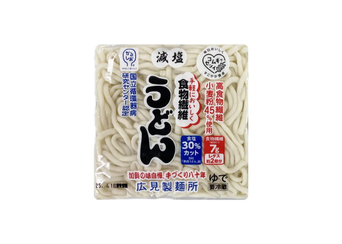 高食物繊維小麦粉を45%配合(小麦粉対比)し1食あたり7gの食物繊維入りの茹でうどんです。
