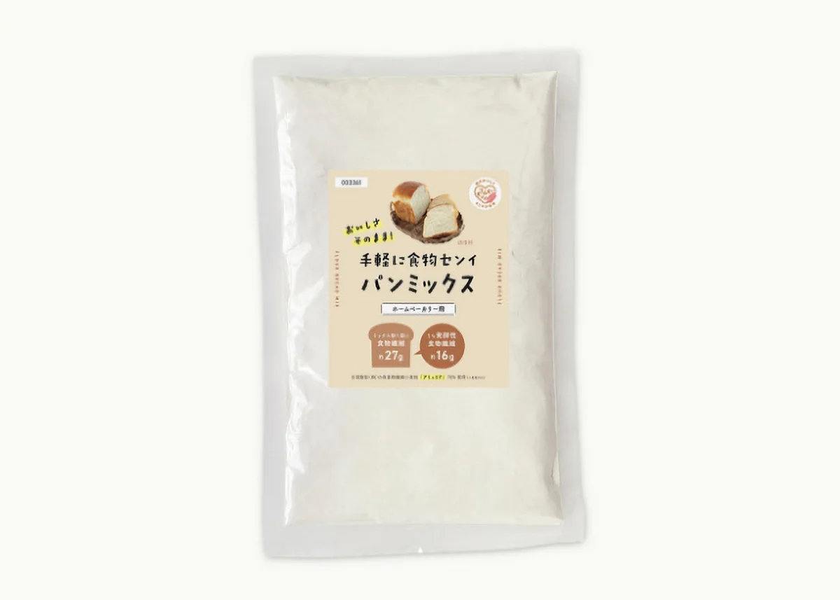 いつものおいしさそのままに、食物繊維をしっかり摂れるパンが、ホームベーカリーで手軽に作れるパンミックス。「アミュリア」を 70%配合(小麦粉対比)し、1袋あたり食物繊維が約27g、うち発酵性食物繊維が約16g入り。