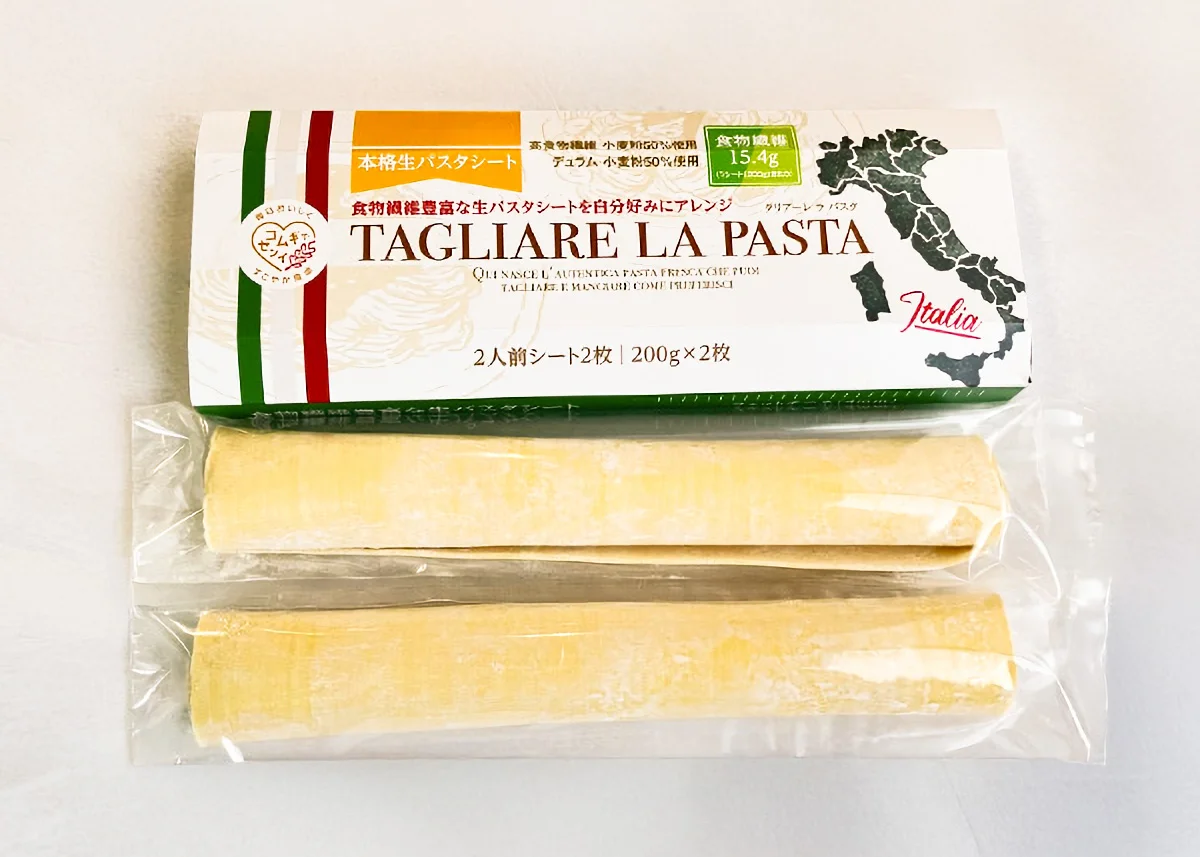 食物繊維豊富な生パスタシートです。シート状なので、そのまま使ったり、お好みのパスタへ切り分け可能!お好みの太さでお好みのパスタソースを。シートのままラザニア、ラビオリも作れます。