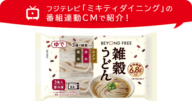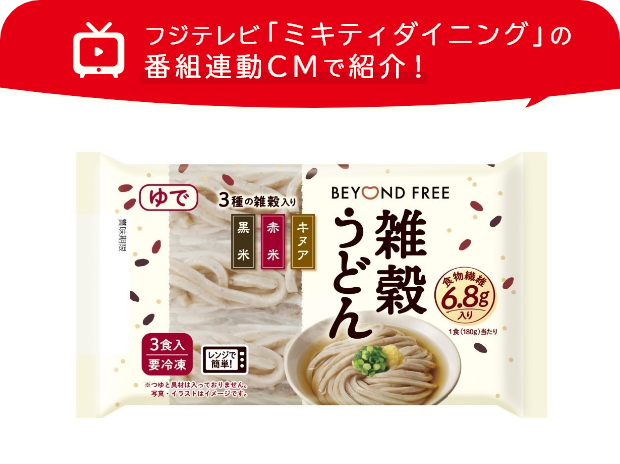 3種の雑穀を使用した風味豊かな冷凍うどんです。