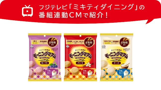 不二家のロングセラーブランド「カントリーマアム」から登場した、食物繊維が入ったひとくちサイズの新朝食“モーニングマアム”。